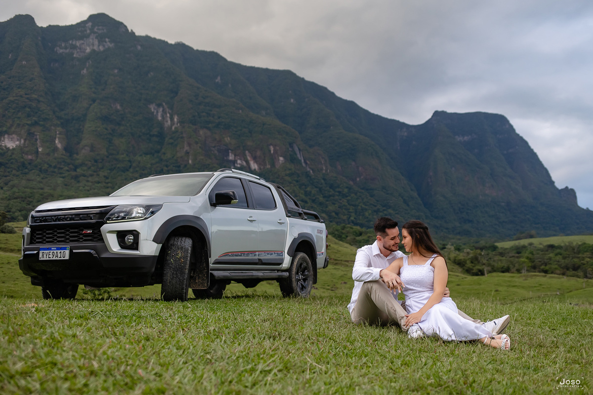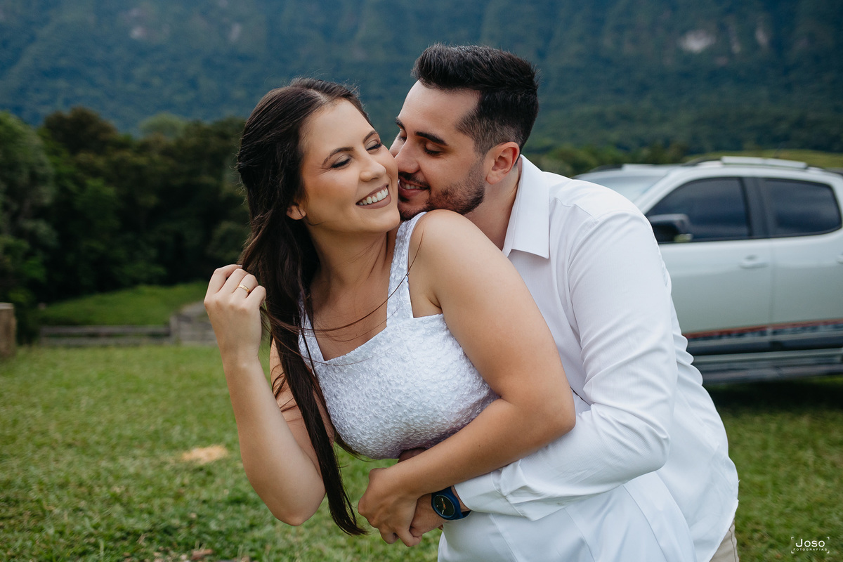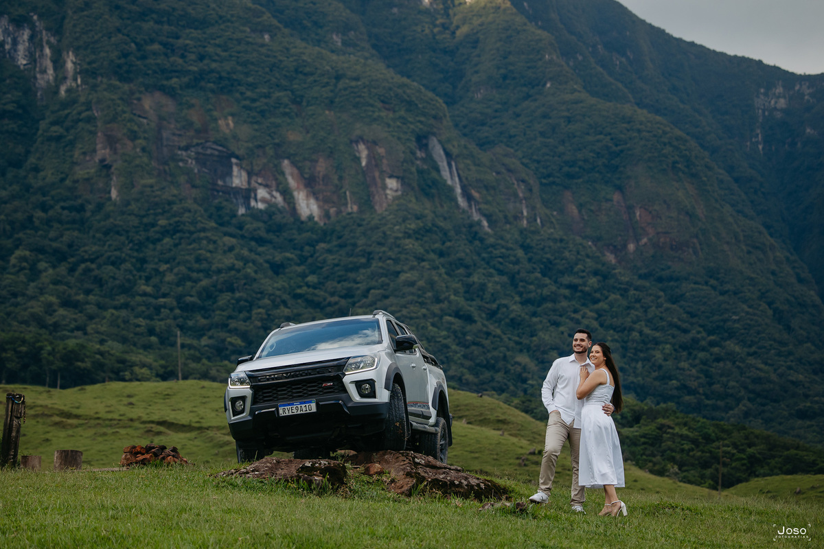 O noivo Gabriel, animado e cheio de orgulho, não escondia o brilho nos olhos ao posar com a caminhonete, detalhe, ele é parece adorar carros, mas apaixonado mesmo, ele é pela Jheni. Que com seu sorriso leve, completava a cena com delicadeza e cumplicidade.