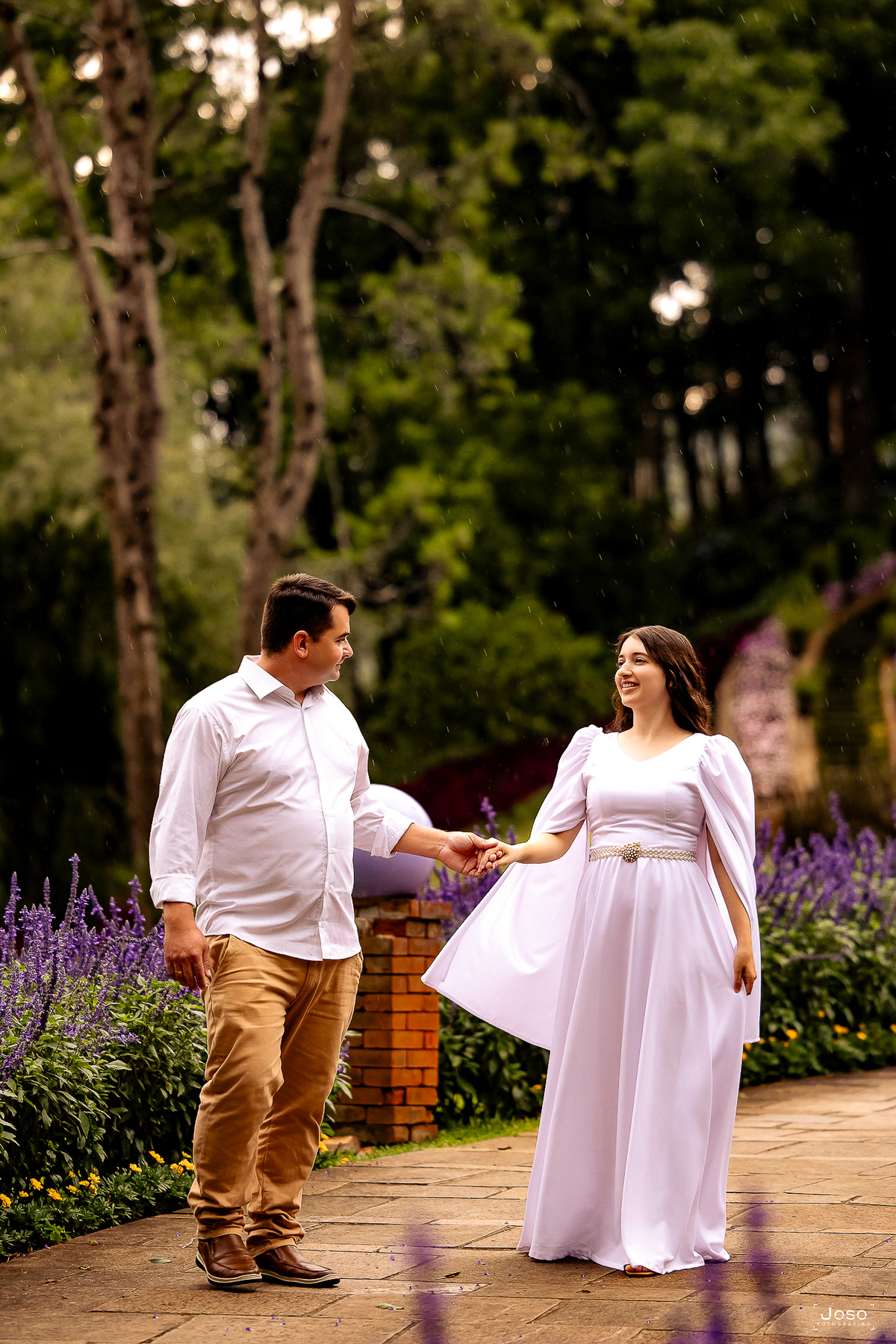 As fotos revelam mais do que poses — revelam sentimentos reais. A tranquilidade de quem sabe que Deus cuida de cada detalhe. A emoção de perceber que até os encontros, os sonhos e as promessas fazem parte de um propósito perfeito. Mesmo sob o céu nublado e os pequenos pingos de chuva, há beleza, porque quando Deus está à frente, tudo coopera para o bem.