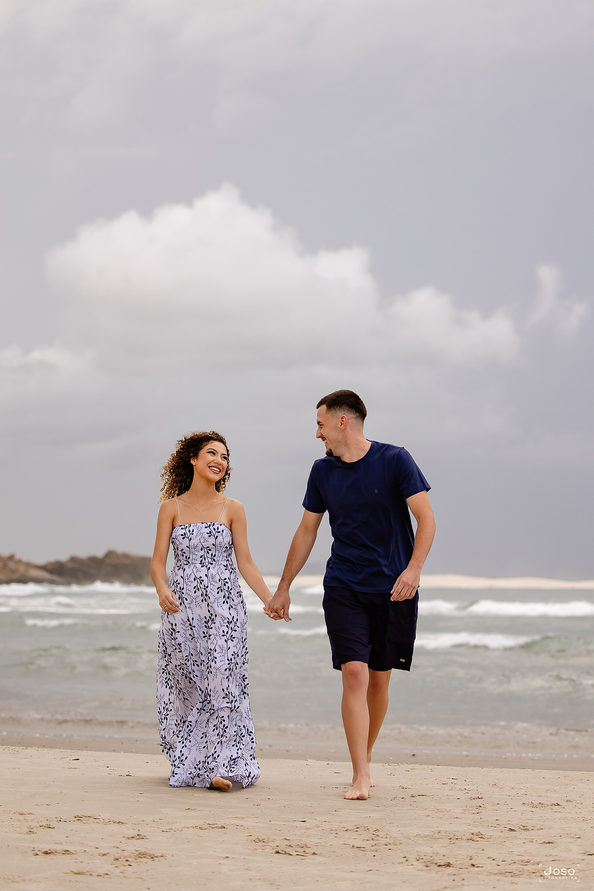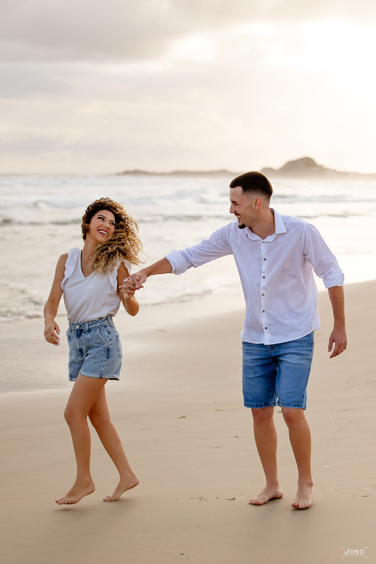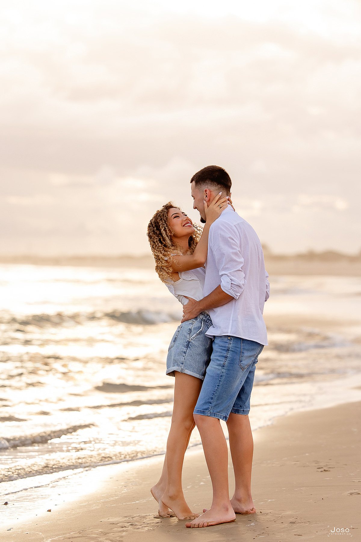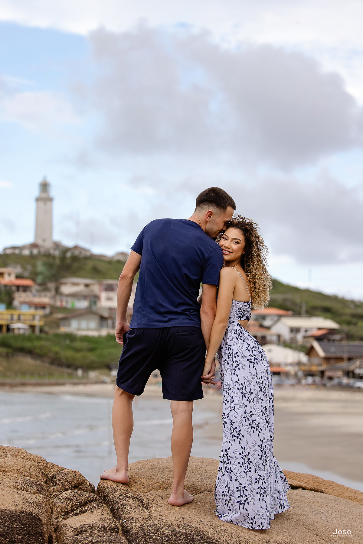 Cada passo na areia, cada abraço apertado e cada sorriso compartilhado revelam a sintonia de um casal que encontra no olhar do outro o seu porto seguro. Sob o céu dramático que antecede o pôr do sol e diante da luz dourada que envolve o farol, eles celebraram não apenas o amor, mas a parceria, a amizade e a alegria de caminhar lado a lado.