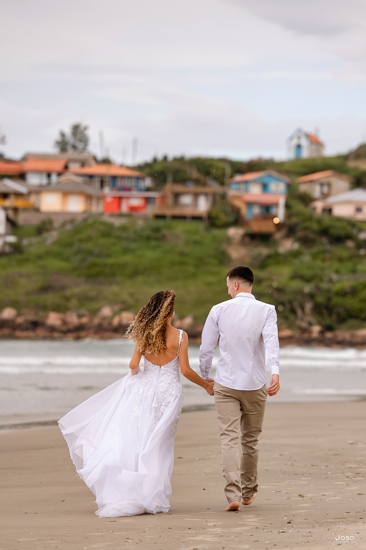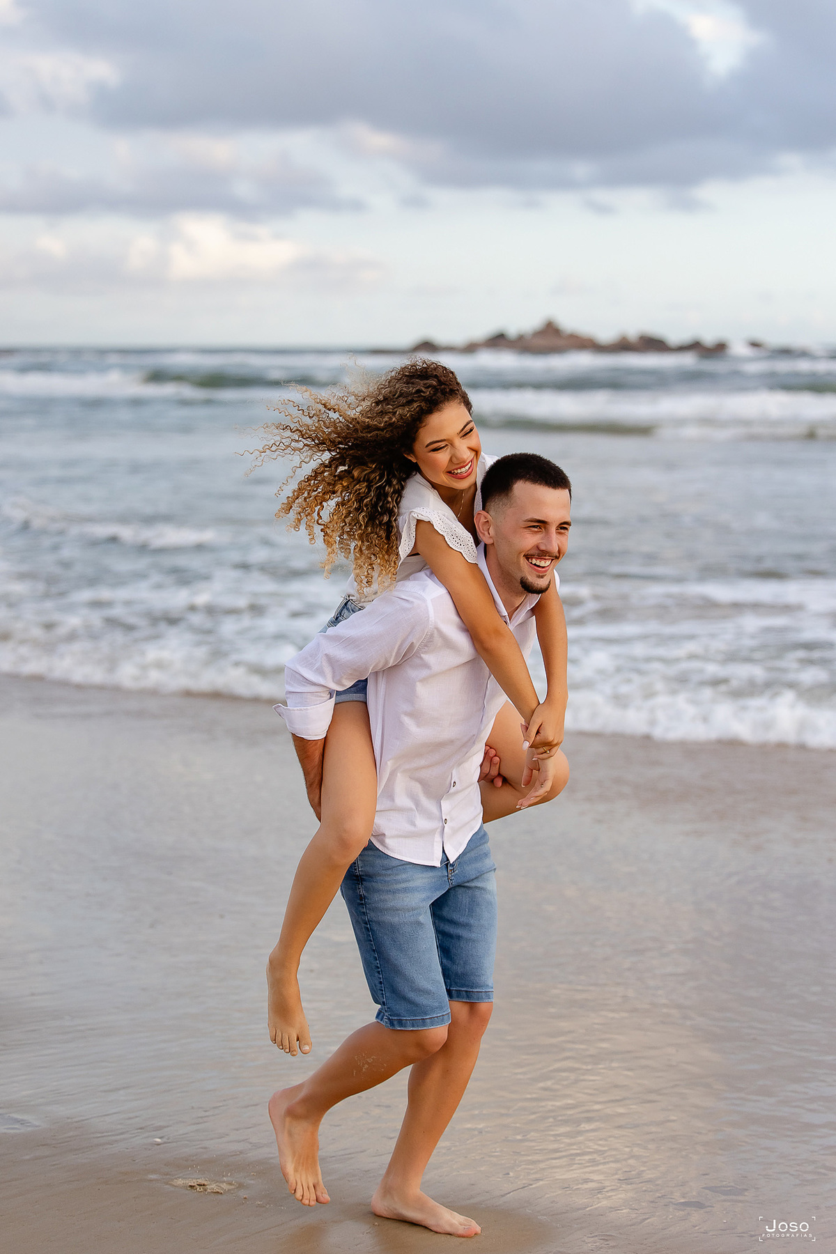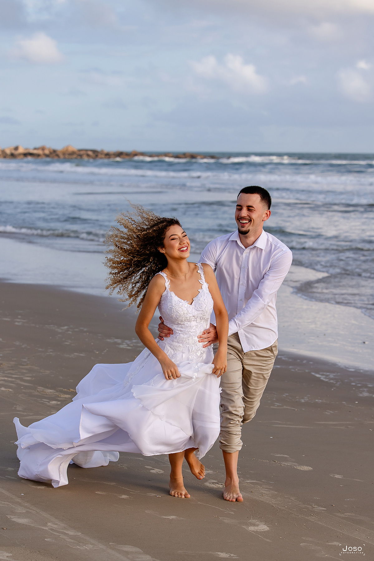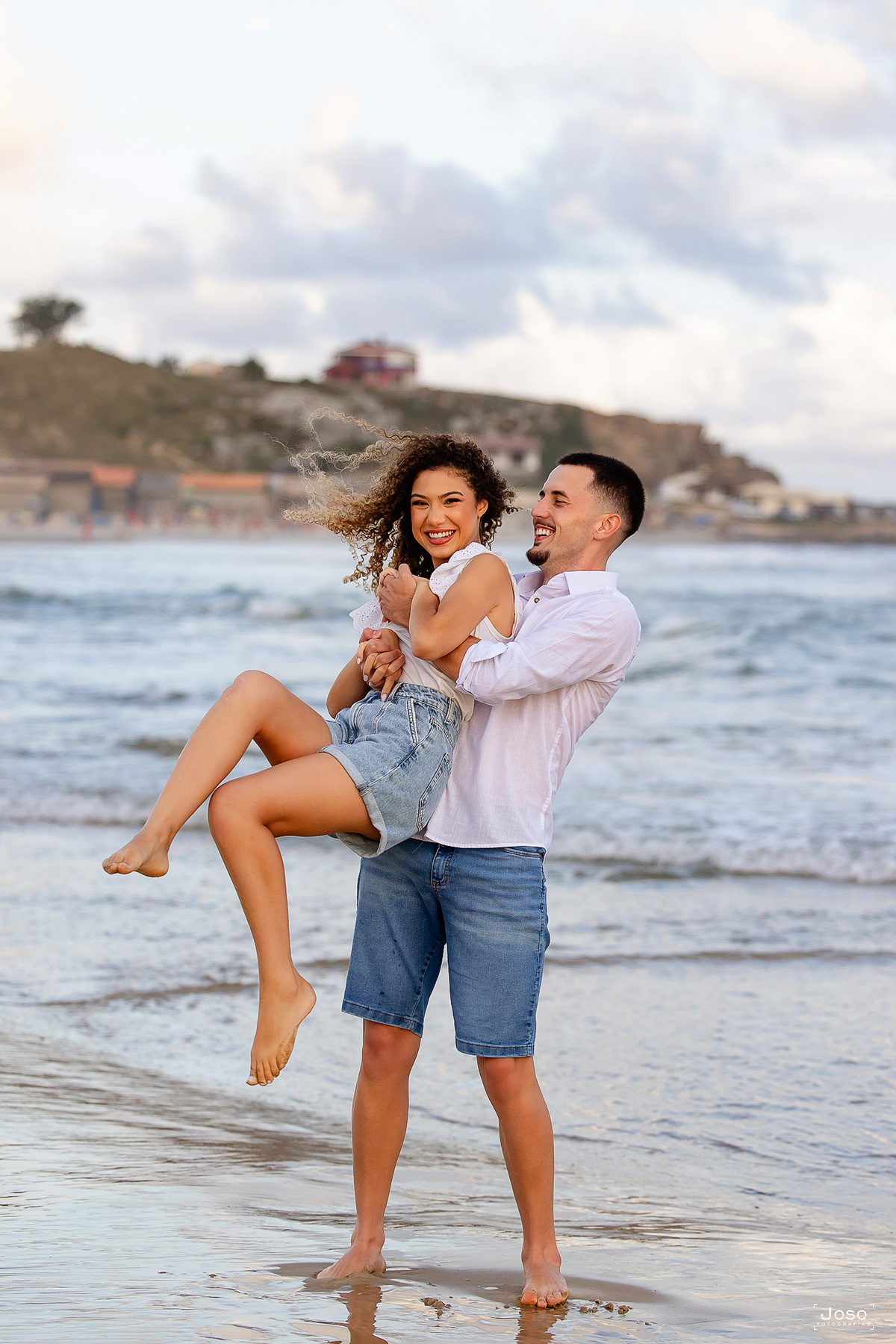 Cada passo na areia, cada abraço apertado e cada sorriso compartilhado revelam a sintonia de um casal que encontra no olhar do outro o seu porto seguro. Sob o céu dramático que antecede o pôr do sol e diante da luz dourada que envolve o farol, eles celebraram não apenas o amor, mas a parceria, a amizade e a alegria de caminhar lado a lado.
