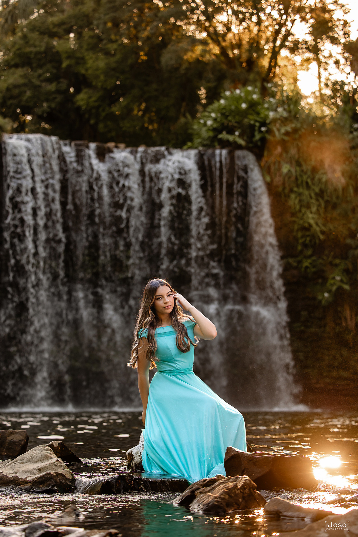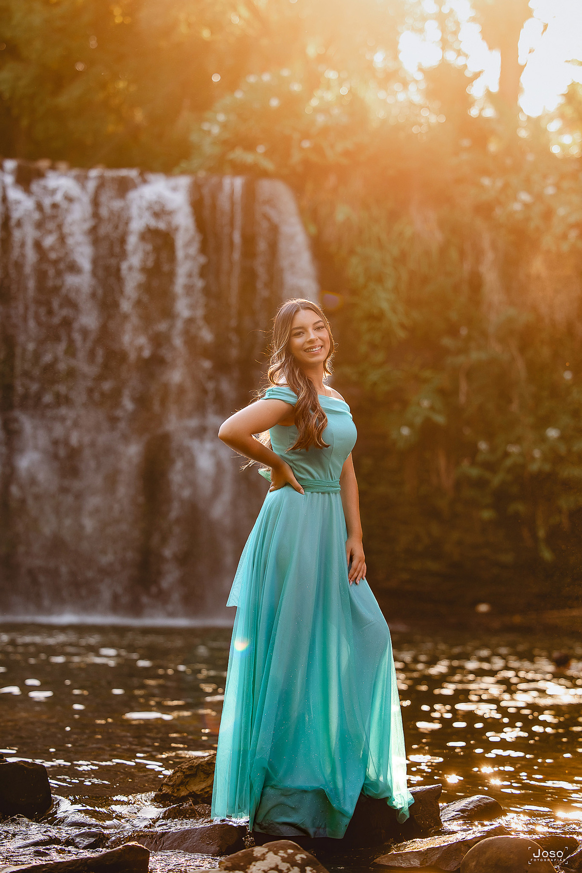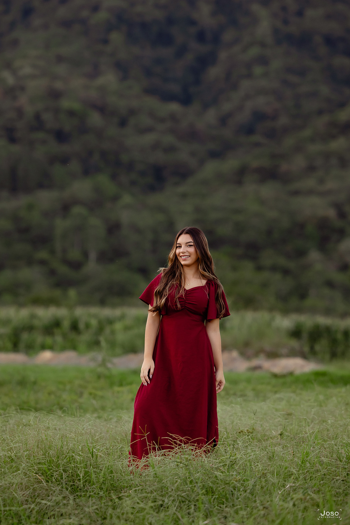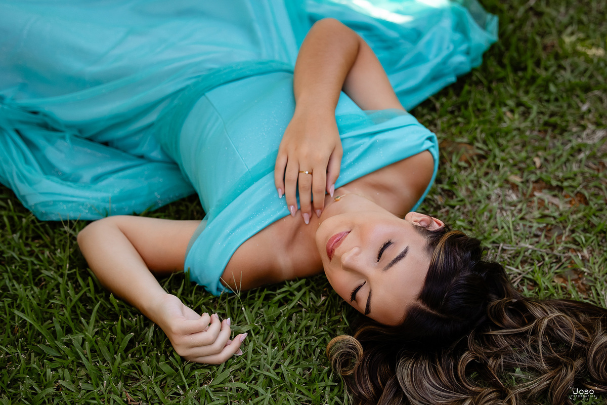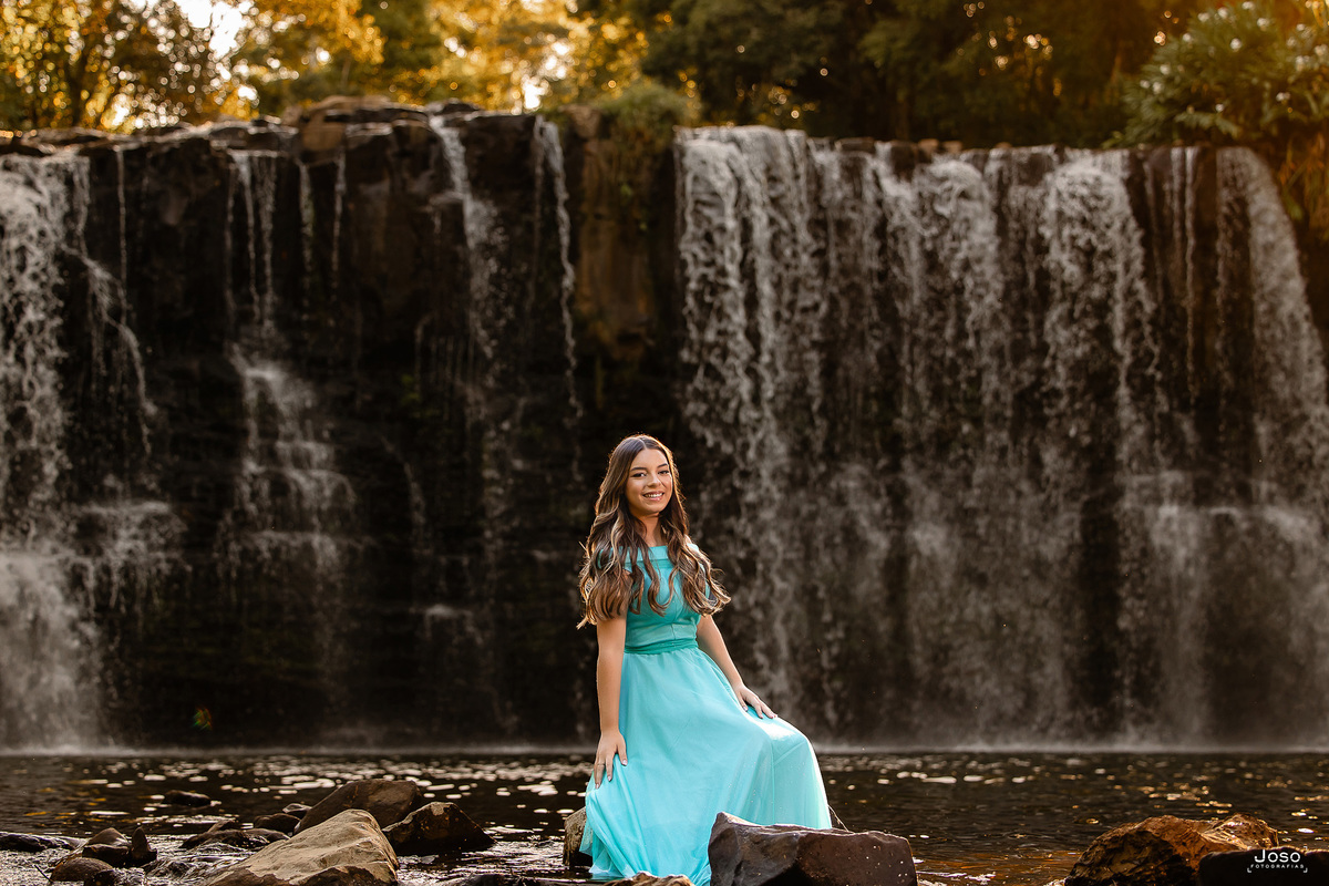 Em meio ao verde intenso das montanhas, ao som suave das águas e à luz dourada do entardecer, cada cenário abraçou a doçura e a força dessa nova fase. O vestido azul trouxe leveza e delicadeza, refletindo a suavidade de seus sonhos; o vermelho marcou presença com personalidade e paixão; já o look moderno revelou a autenticidade e a confiança de quem começa a escrever o próprio futuro.