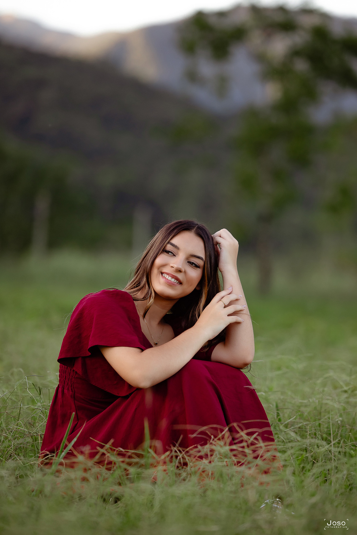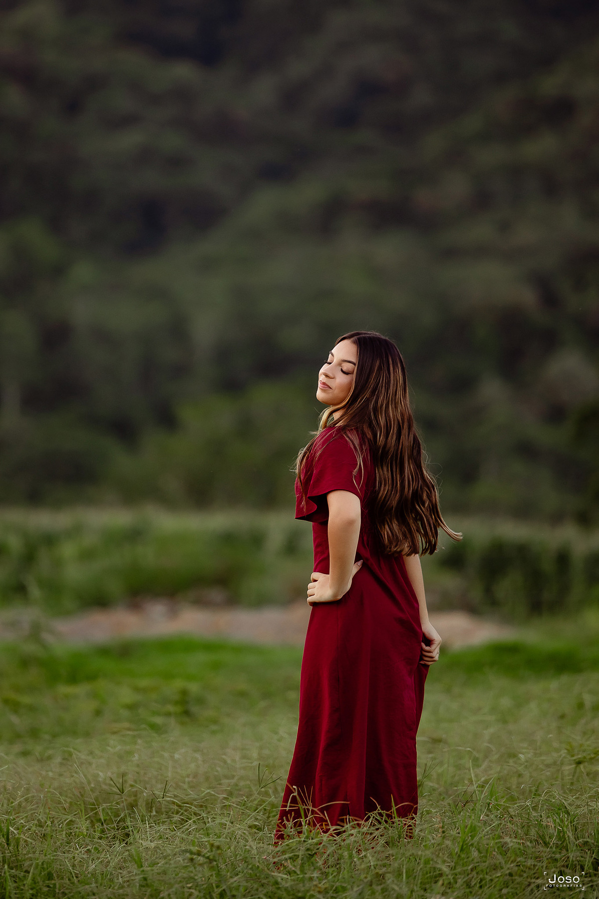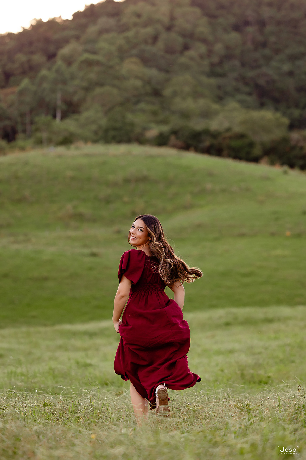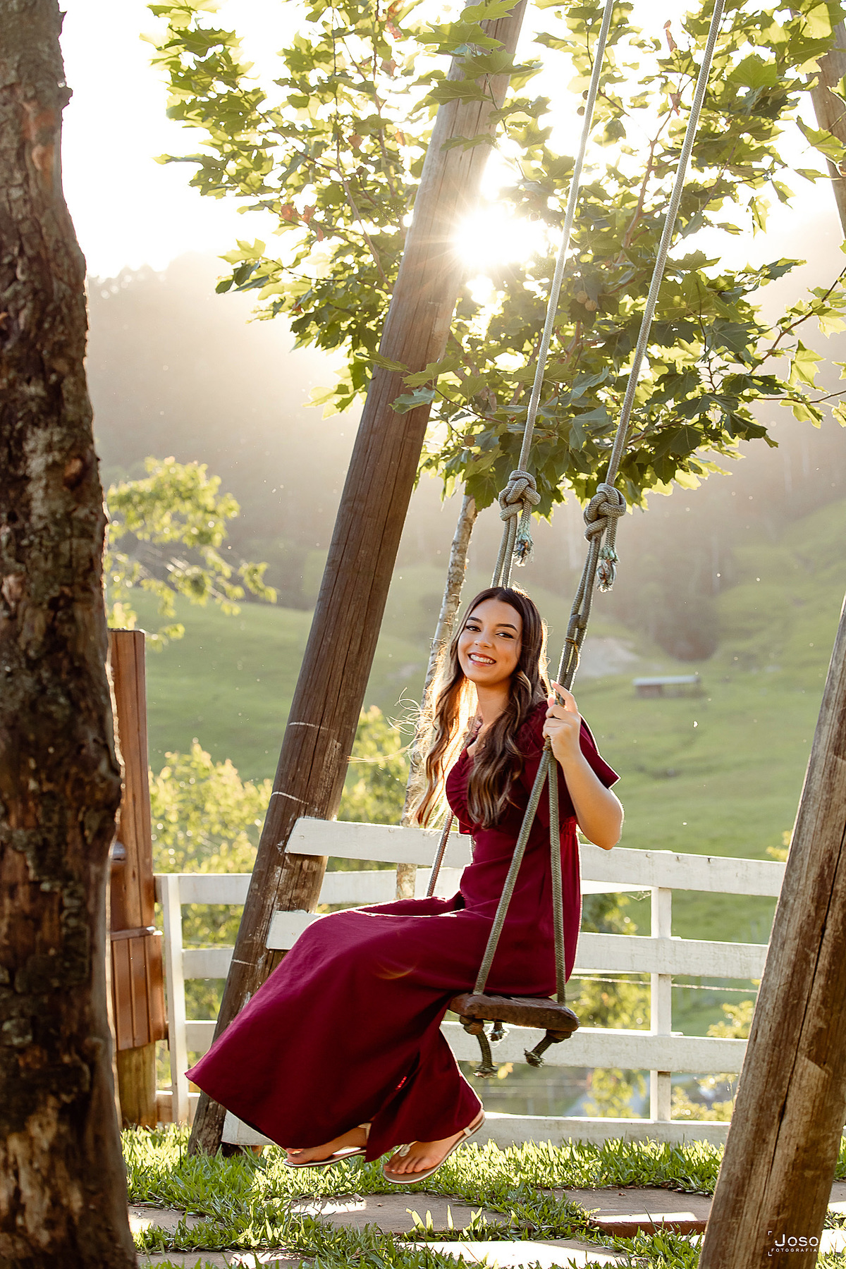 Em meio ao verde intenso das montanhas, ao som suave das águas e à luz dourada do entardecer, cada cenário abraçou a doçura e a força dessa nova fase. O vestido azul trouxe leveza e delicadeza, refletindo a suavidade de seus sonhos; o vermelho marcou presença com personalidade e paixão; já o look moderno revelou a autenticidade e a confiança de quem começa a escrever o próprio futuro.