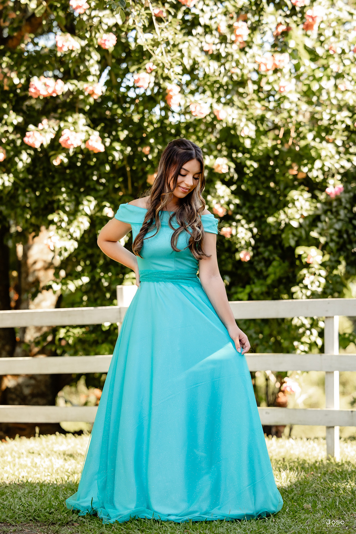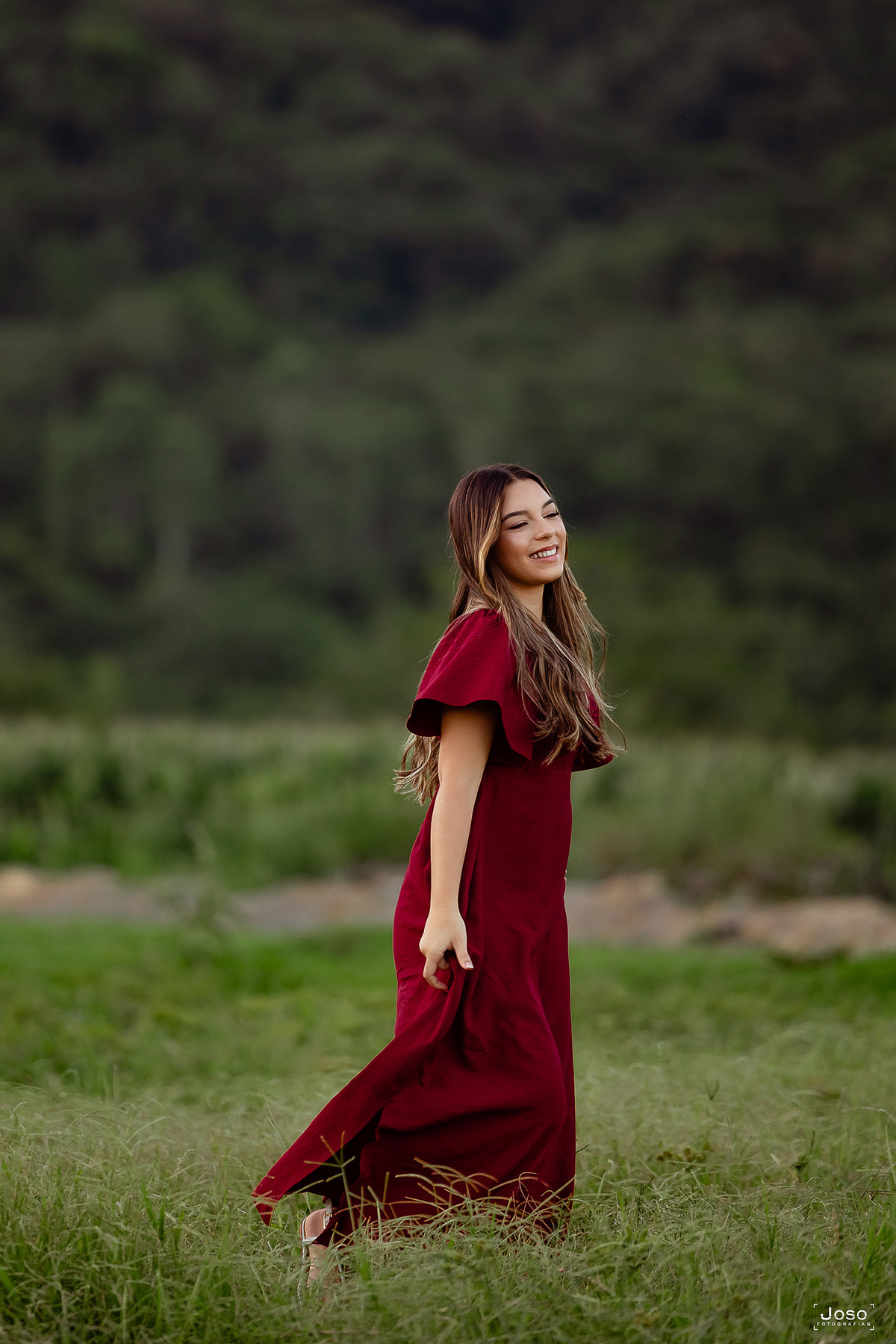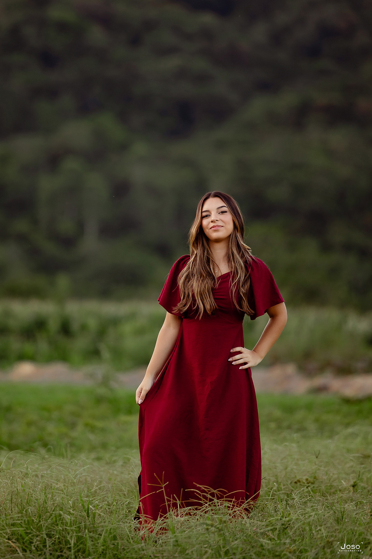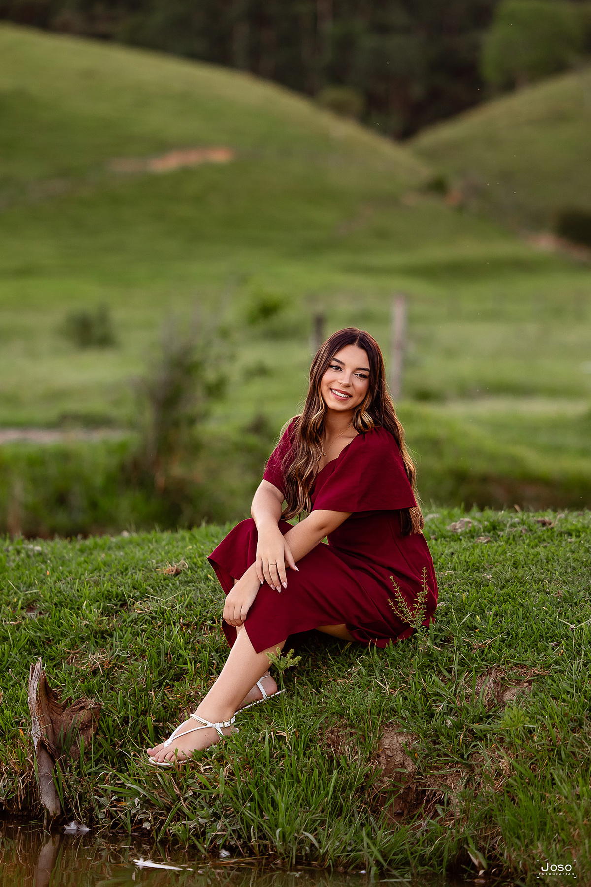 Em meio ao verde intenso das montanhas, ao som suave das águas e à luz dourada do entardecer, cada cenário abraçou a doçura e a força dessa nova fase. O vestido azul trouxe leveza e delicadeza, refletindo a suavidade de seus sonhos; o vermelho marcou presença com personalidade e paixão; já o look moderno revelou a autenticidade e a confiança de quem começa a escrever o próprio futuro.